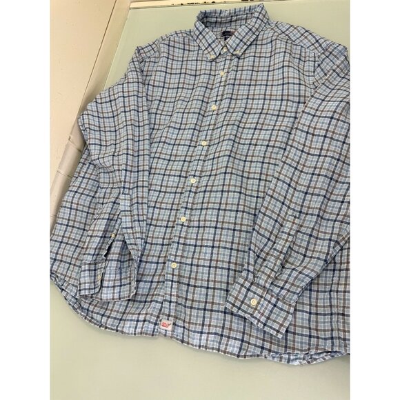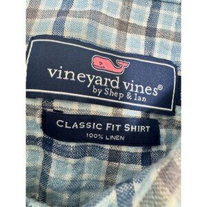 Vineyard Vines Classic Fit Shirt Mens XL 100% Linen Windowpane Plaid Preppy