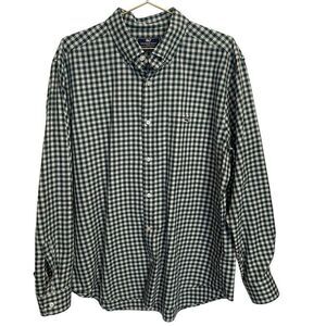 Vineyard Vines Classic Fit Tucker Cotton Green White Checked Button Down Shirt L