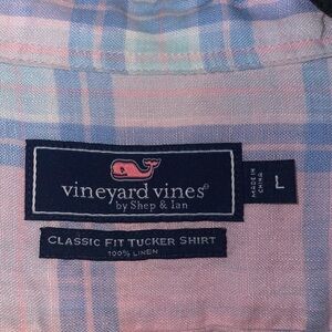 Vineyard Vines Classic Fit Tucker Shirt 100% Linen Pink And Blue Plaid Size L