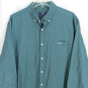 Vineyard Vines Classic Fit Tucker Shirt Size XL Green Blue Check Long Sleeve