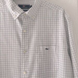 Vineyard Vines Classic Fit Tucker Shirt – White & Light Gray, Size Large