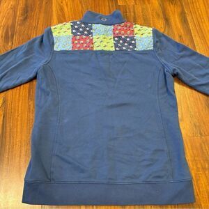 Vineyard Vines Classic Patchwork Christmas Holiday Navy Quarterzip Sweatshirt. Martha’s Vineyard. 100% cotton. Armpit to armpit 19 inches. Length 23 1/2 inches. Size small. Good condition!