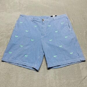 Vineyard Vines Club Shorts Seersucker Blue White Striped Men's 40 Whale Shep Ian