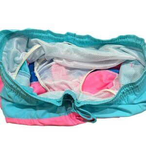 Vineyard Vines Color Block Bathing Suit Trunks Fully Lined Swimsuit Size Large. This suit is made of 100% Polyester. These trunks measure waist (lying flat) 19", Rise 12", Inseam 7". These shorts feature a fully intact liner, back pocket and elastic waist. They run big so carefully check the measurements. They are in good, used condition. Ships from a Smoke Free Home. Any questions, please ask. All reasonable offers welcome.