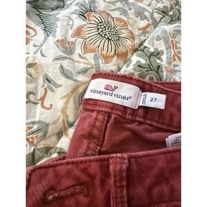 These Vineyard Vines Corduroy Women's Size 27 Jamie High Rise Skinny Pants are stylish and versatile for various occasions such as casual outings, workwear, or even a party. Made from a blend of cotton, viscose, and spandex, these pants provide a comfortable fit with a mid-rise and skinny leg style. The rosewood color and solid pattern add a touch of sophistication to the chino-style design. Perfect for any season, these lightweight pants are easy to care for with machine washable fabric.