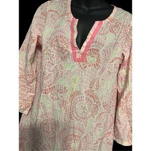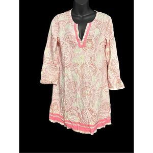 Vineyard Vines Cotton Mosaic Swim Cover Up Tunic Dress Womens Size Medium Swimsuit Cover-up. This is a Swim cover-up in great pink and cream color. Size medium Good CONDITION