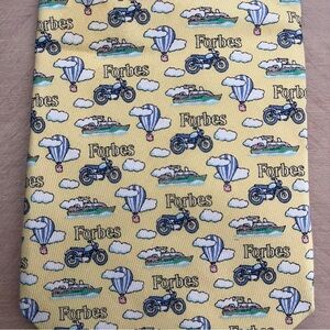 Custom Collection Vineyard Vines silk tie with Forbes, hot air balloon, clouds, and motorcycle print.