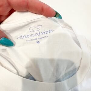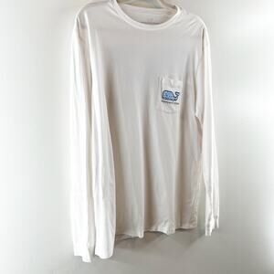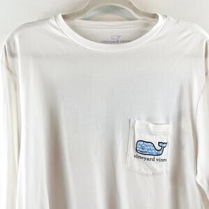 Vineyard Vines Dolphin Fish Whale Pocket Long Sleeve Cotton T-Shirt White Medium
