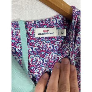 Vineyard Vines Dress Girls 12 Pink Aqua Shells Ribbon Trim