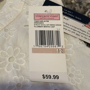 Vineyard Vines Dress Girl’s Size 12 White Eyelet Scallop Swing Dress NWT