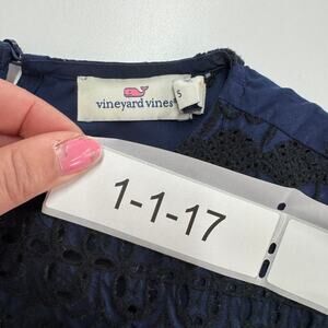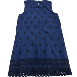 Vineyard Vines Dress Womens Small Blue Black Eyelet Embroidered Shift Mini