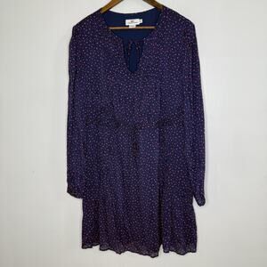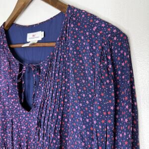 Vineyard Vines Dress Womens XL Navy Star Print Long Sleeve Lined Tie Neck Boho
