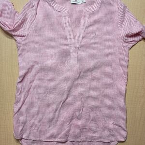 Vineyard Vines Easy Striped Savannah Popover Top Pink and White Size Small