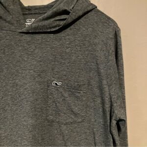 Vineyard Vines Edgartown Hooded Long Sleeve T-Shirt Dark Gray Whale Size Large