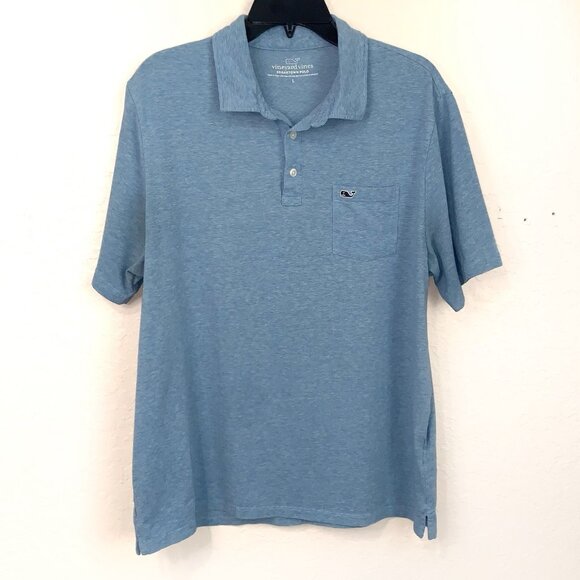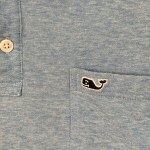 Vineyard Vines Edgartown Polo Mens Large Blue Striped Stretch Whale Logo Pocket