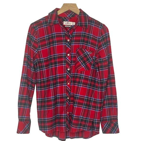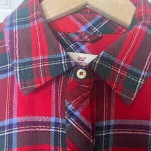 Vineyard Vines Flannel Chilmark Relaxed Long Sleeve Button-Down Shirt - Red Tartan Plaid in Women’s Size 4