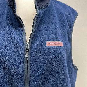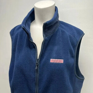 Vineyard Vines Fleece Vest Full Zip Sleeveless Navy Blue Pink Men's Size Small