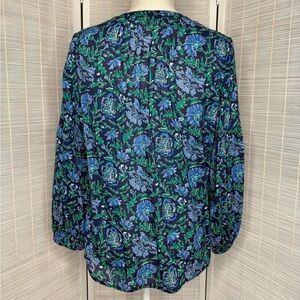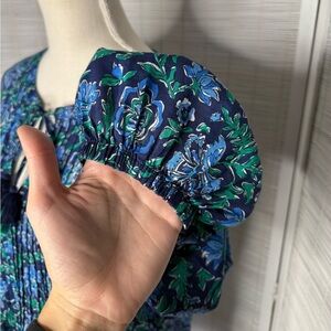 Vineyard Vines Floral Pleated Top Blue Green Size S Cotton Blend Elastic Cuff