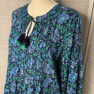 ✨ Vineyard Vines floral pleated top. Neck tie detail with tassel. Elastic cuff. Cotton blend. Good used condition!