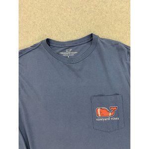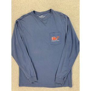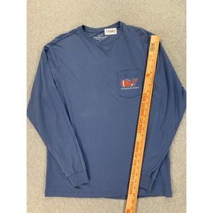 Vineyard Vines Football Logo Long Sleeve Crew Tee Shirt (Men's Medium) Blue