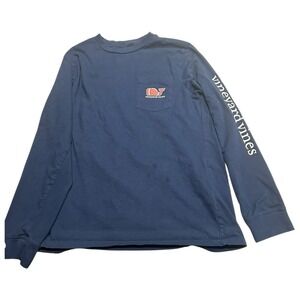 Vineyard Vines Football Logo Whale Long Sleeve T-Shirt Boys Large (14) Navy Blue