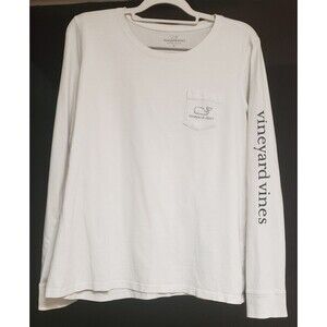 Vineyard Vines Football Whale Logo Pocket Tee Mens White Size Large Long Sleeve