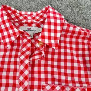 Vineyard Vines Gingham Check Button Front Shirt Red White Size 2 Long Sleeve