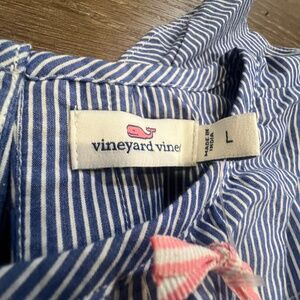 Vineyard Vines Girls Striped Ruffle Top New With Tags Blue/White Stripe Sz L