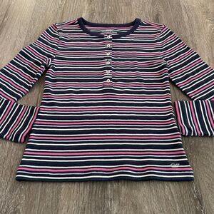 Vineyard Vines Girls Ribbed Stripe Henley Long Sleeve Top - Size: S (7-8)