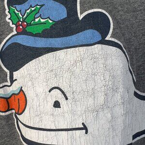 whale logo on front chest pocket as a snowman with carrot nose and top hot covered in snow