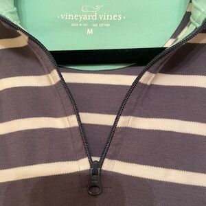 Vineyard Vines Gray Striped Half-Zip Sweater Size Medium