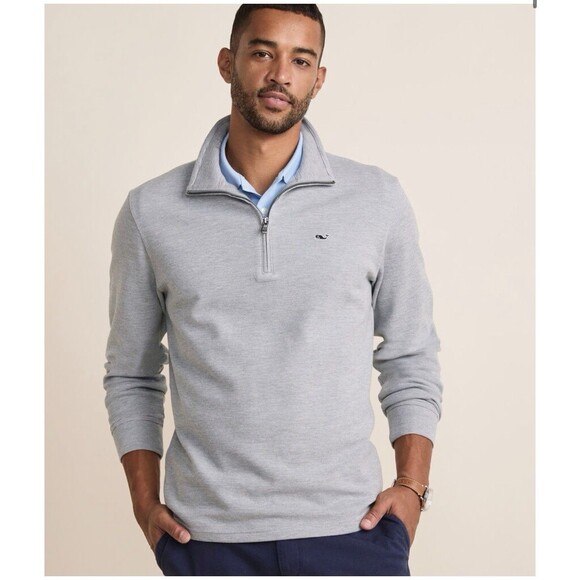 Vineyard Vines Gray Sweater 1/4 Zip Pullover Preppy Performance Saltwater