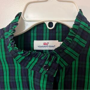 Vineyard Vines Green and Blue Top with Ruffled Collar