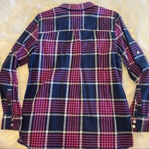 Vineyard Vines Harbor Plaid Relaxed Popover Shirt Blouse Navy Pink Linen Size 4