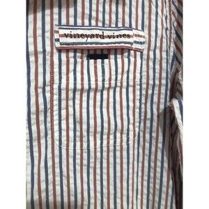 Vineyard Vines Harbor Seersucker Coverup Shirt Dress Red/White/Blue L/S 12 EUC