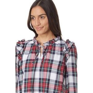 Vineyard Vines Holiday Plaid Ruffle Popover Tie Neck Blouse Sz XS Preppy Cottage