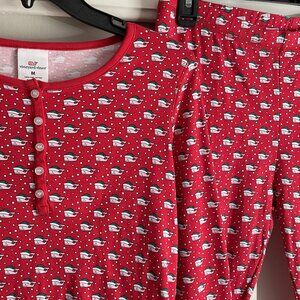 Vineyard Vines Holiday Santa Whales Long Pajama Sleep SET Size M Red Cotton PJs