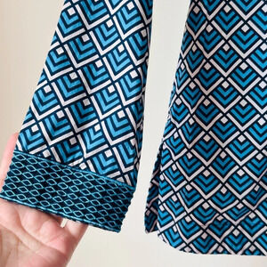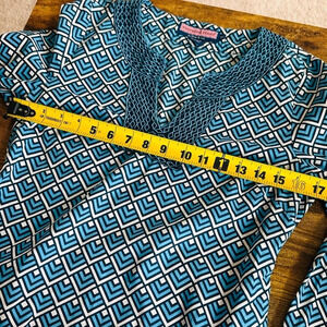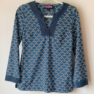Elevate your casual style with this gorgeous Vineyard Vines Island Block Tunic in size XS. With its vibrant geometric pattern in blue and white, this tunic is perfect for any occasion, whether you’re heading to the beach or out for a casual day in town.