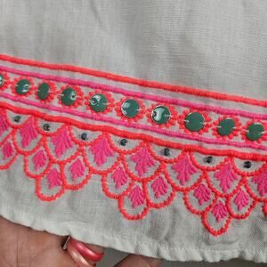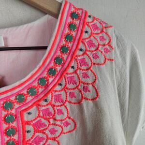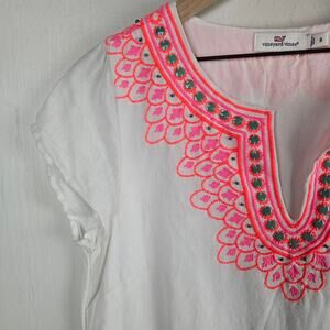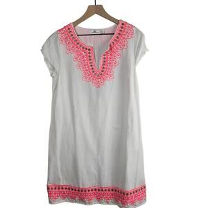 Vineyard Vines Island Embroidered Linen Mini Dress Tunic 8 White Neon Pink