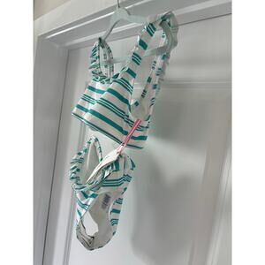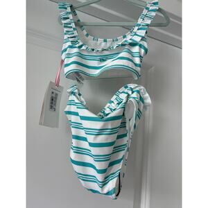 Vineyard Vines J-Stripe Square Neck Bikini White and Blue Size 5/6 NWTs