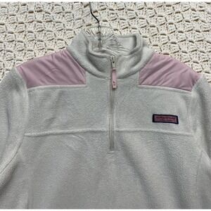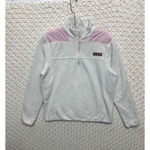 Vineyard Vines Jacket Women Small White Pink Sweater 1/4 Zip Mock Pullover
