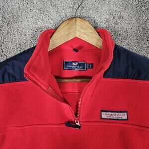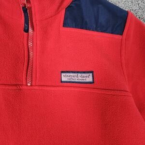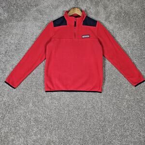 Vineyard Vines Jacket Youth Large Red Blue Fleece Pullover 1/4 Zip Preppy