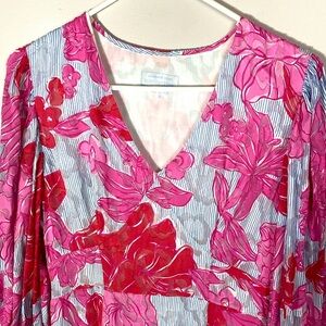Vineyard Vines Kentucky Derby Seersucker Pink and White Floral Midi Dress size 6