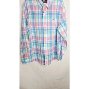 Vineyard Vines Kids 100% Cotton Plaid Long Sleeve Button Front Shirt Size Small