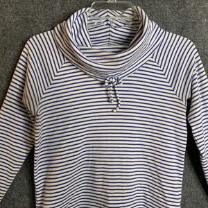 Vineyard Vines Knit Top Women M Cowl Collar Blue White Stripe Beachy