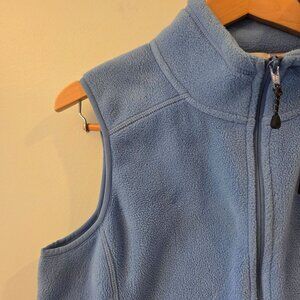 Details: The women's fleece vests are back and ready to tackle cool days! 100% polyester Polartec® fleece Body length to hips: 24 1/2" Zip front vest with zip pockets. EUC. Light Blue.