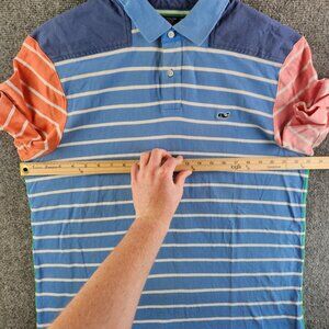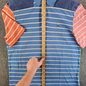 Vineyard Vines Large Multicolor Stripe Color Block Polo Shirt Short Sleeve Patch