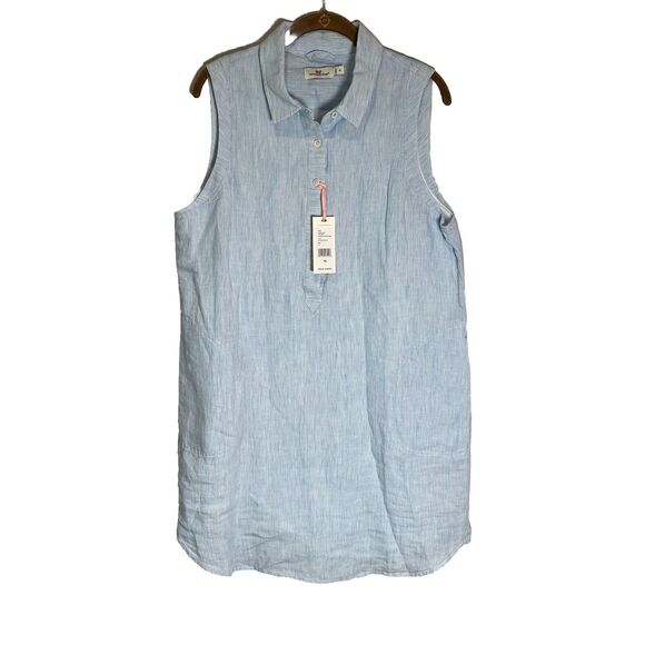 Chic sleeveless mini dress. Light blue color. Perfect for casual outings.