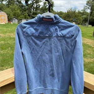 Soft light blue fleece with quarter-zip. Features logo patch on chest. Youth size medium 12-14