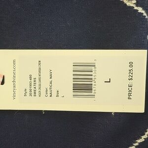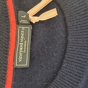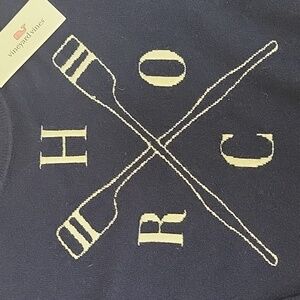 Men's large navy white limited edition HOCR cross oars Intarsia crew neck cashmere sweater from Vineyard Vines. New with tags. 23" pit to pit flat